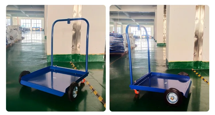 The compact trolley has 2 fixed wheels and 2 castors that make it very easy to handle.