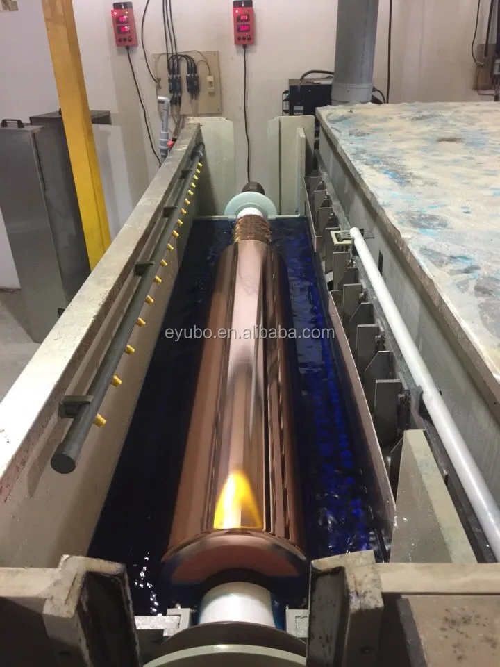 The copper plating process uses the Copper-Plating machine to place a layer of copper onto the cylinder for the engraving process. This compact machine, based on the latest knowledge and technology in the rotogravure-electroplating field, is constructed with the latest materials and guarantees a high standard of workmanship .Copper is used to cover cylinders because it is soft and pliable, making it easy to engraving.