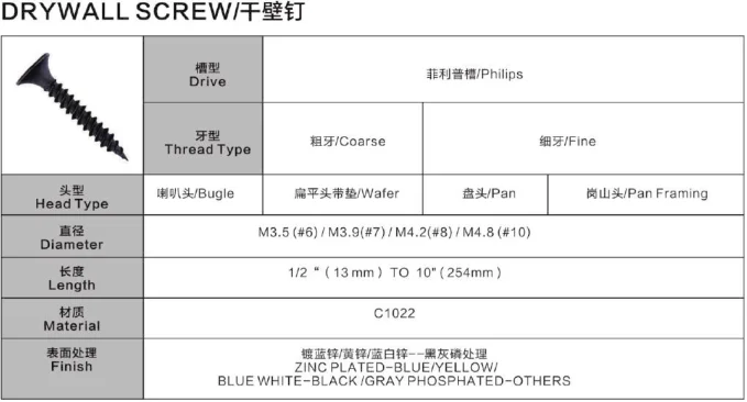Product Name | 2019 Size 3.5*50mm C1022 Drywall Screws |