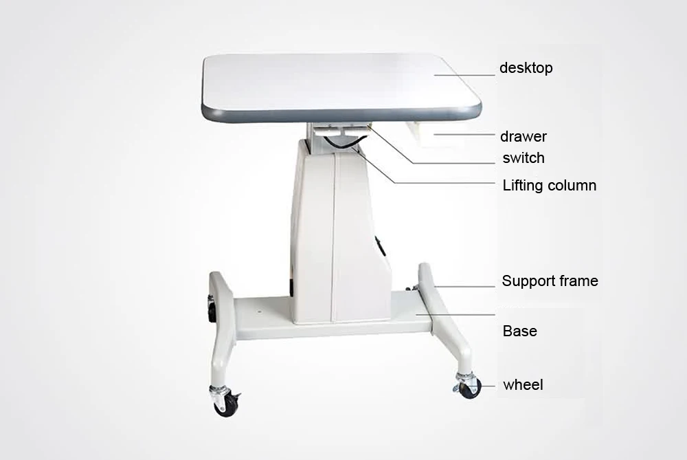 Products can be used to place slit lamps, projectors and other ophthalmic instruments, the table can be electric lift, stable performance, low noise, suitable for optical shops and eye hospitals.