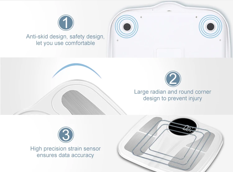 8)Measure:weight,fat(%),water(%),muscle(%),bone(%), BMI ,Calorie,visceral(%) &body age, etc. total 18 datas |