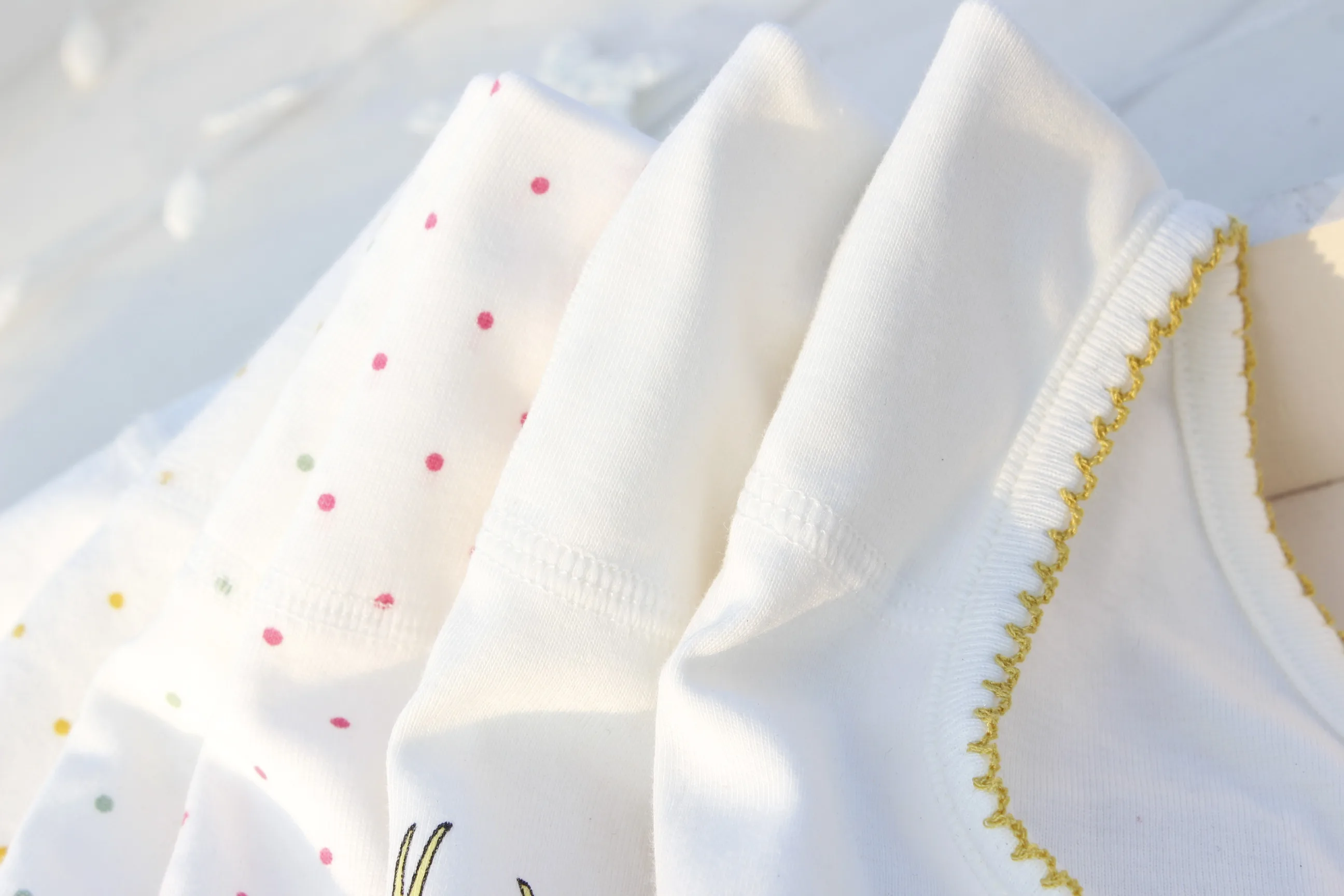 3. Pure cotton clothes will have a slight shrinkage, such as the baby slant fat advice to choose a bigger yard, cotton clothes recommended under 30℃ washing.