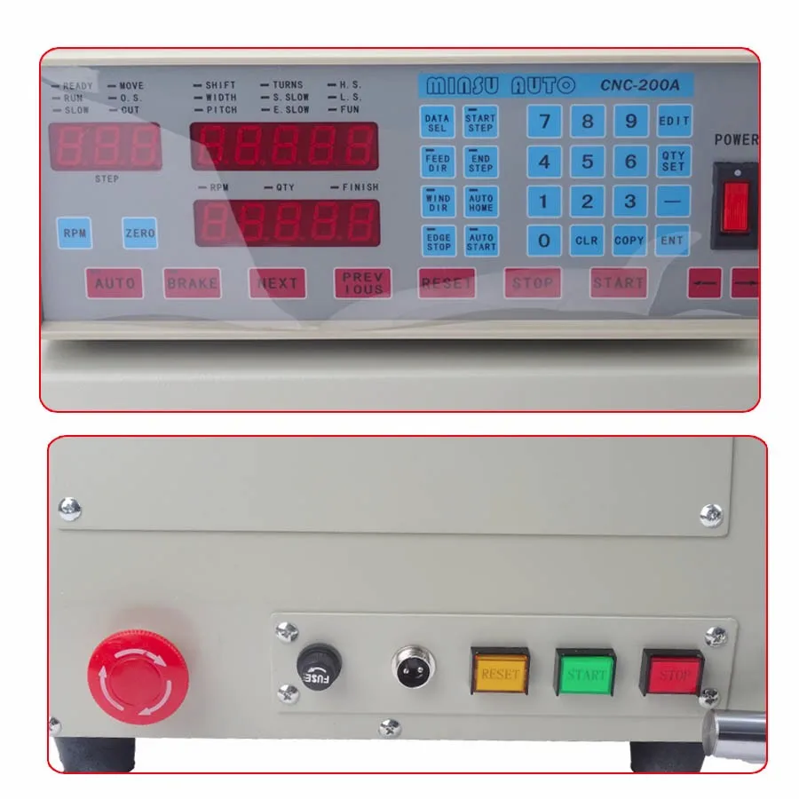 7.Can settle data: starting point, wire gage, winding displacement width, circles, speed of starting the winding , stopping slow-speed, winding speed, slow lathe speed , winding displacement direction , winding direction , two-terminal stopping , automatic reset, automatic start (job-hopping winding)