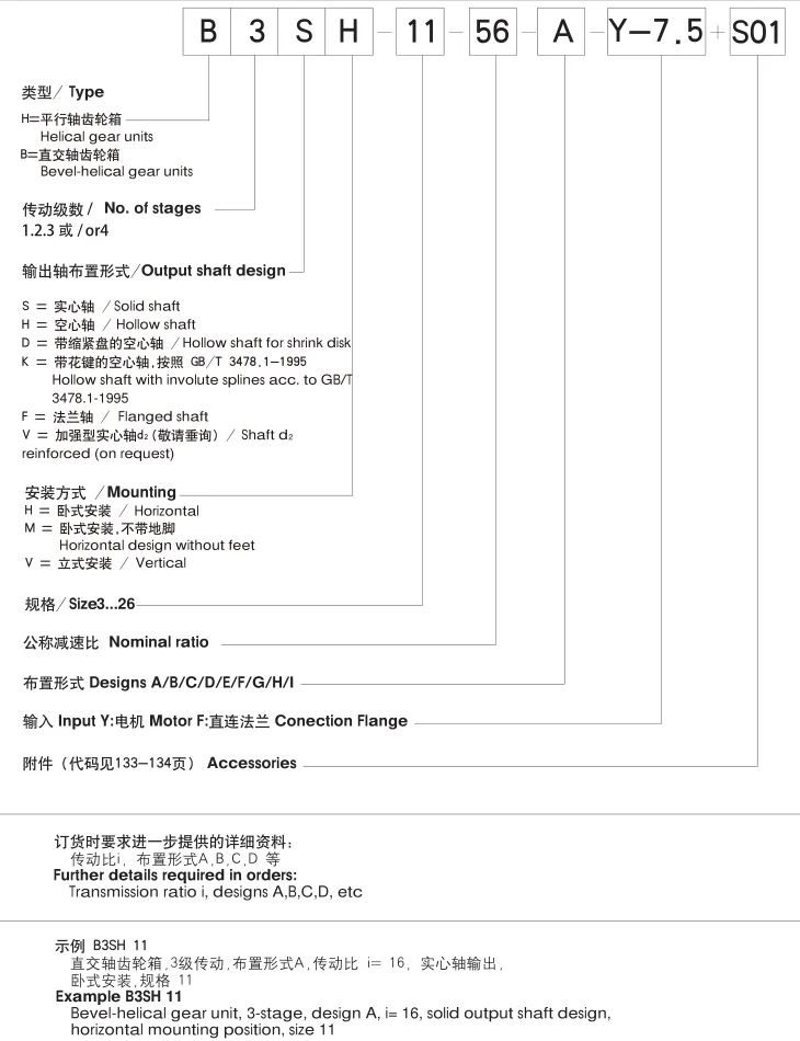 5. Output mode: solid axle with flat key, hollow axle with flat key, hollow axle with expansion disk, hollow axle with spline connection, solid axle with spline connection and
