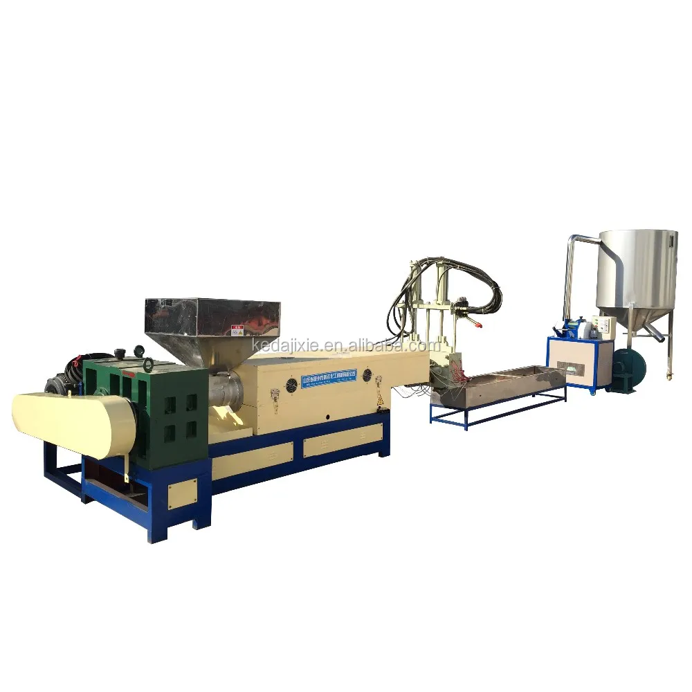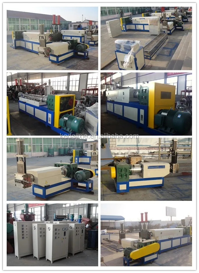 1.unit include:extrusion granulating machine, heating system, power distribution box,cooling tank, and cutter. The machine can produces continuously and only needs one person to operate.