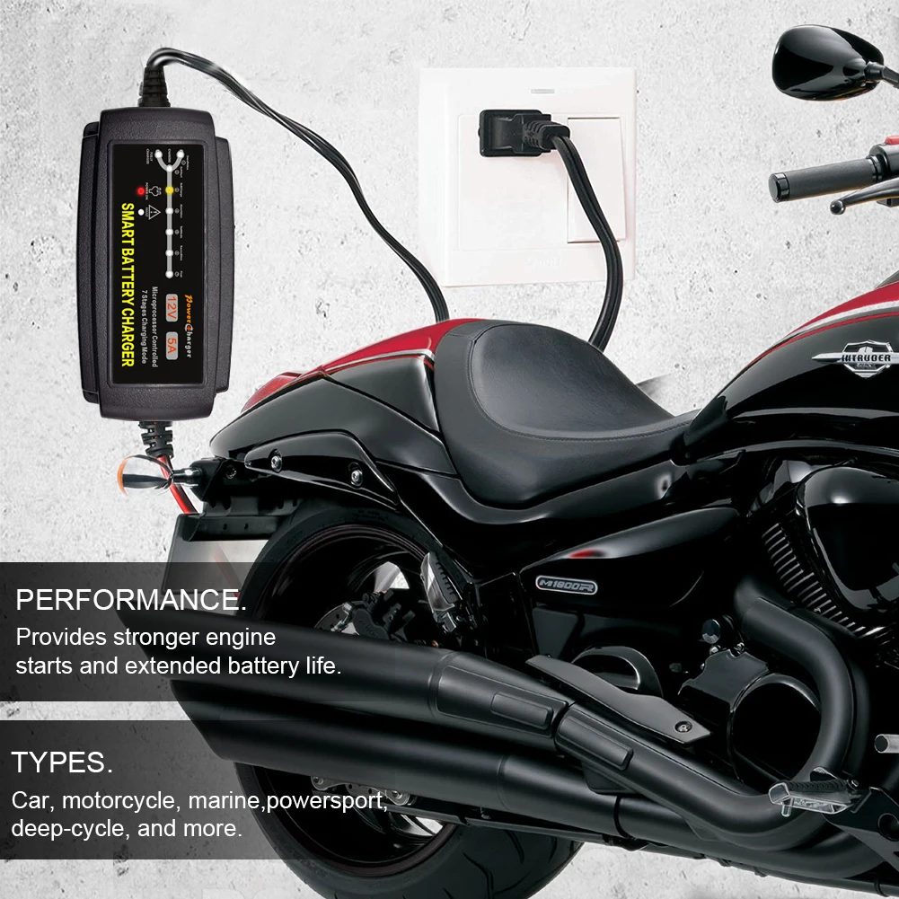 (1)Wide Application - Charge fully drained 12V Pb/SLA/GEL/AGM/VRLA/sealed lead-acid batteries and WET/FLOODED for maintenance, it’s smart battery charger for boat, trolling motor, car, automotive, motorcycle, automobile, lawn mower, lawn tractor, camper,watercraft, powers-port, electric vehicle, back-up generator, etc.