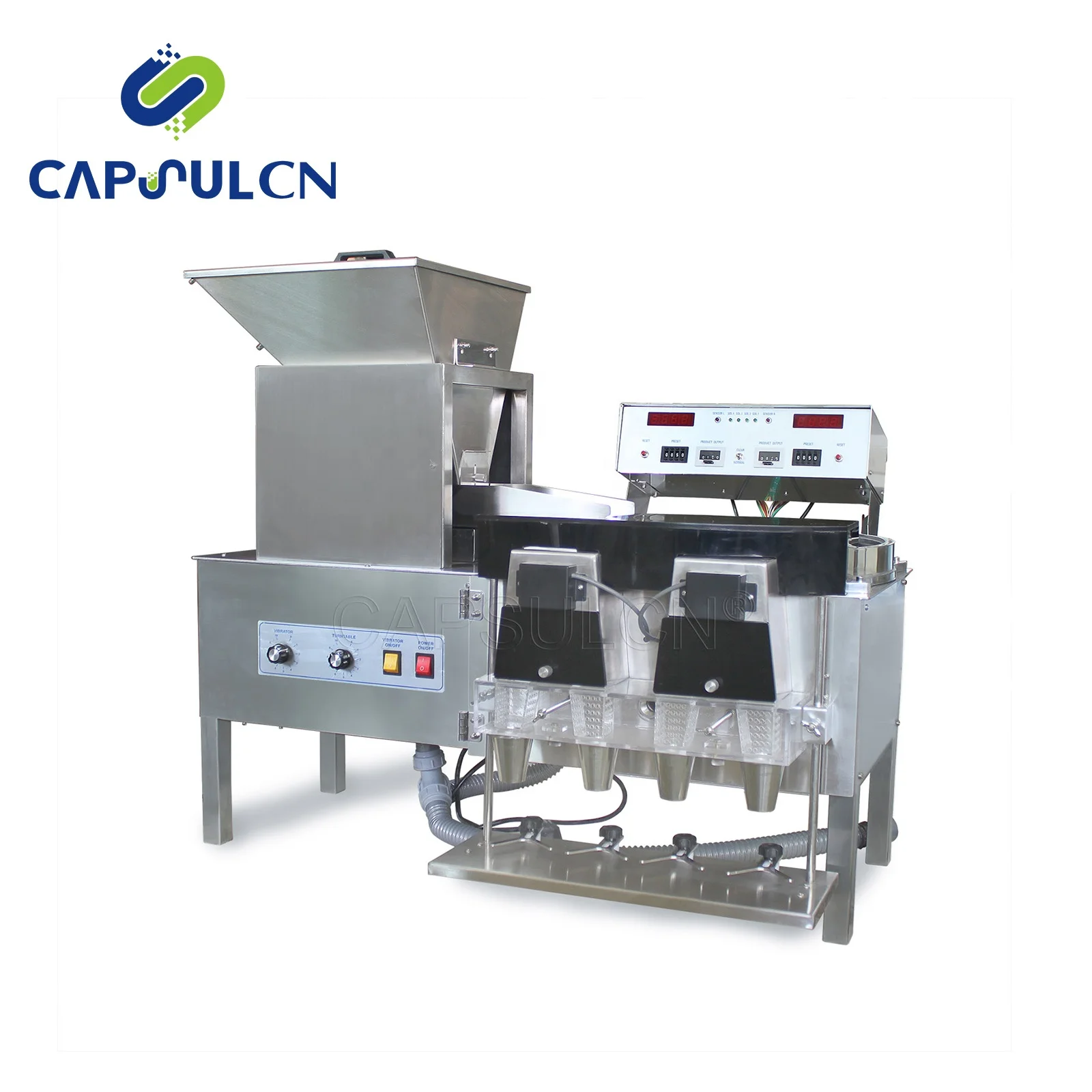 The machine can be adjusted to count capsules or tablets between 1-9999 pcs per bottle without changing spare parts.