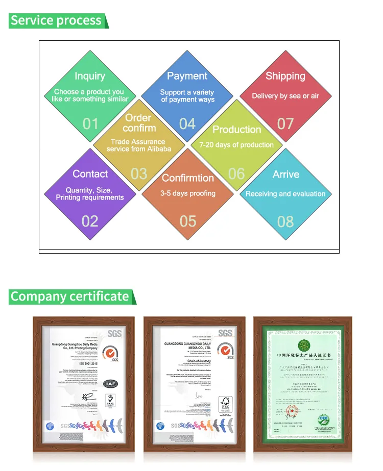 Surface disposal | Glossy/matte varnish, glossy/matte lamination, UV, gold hot stamping,etc. |