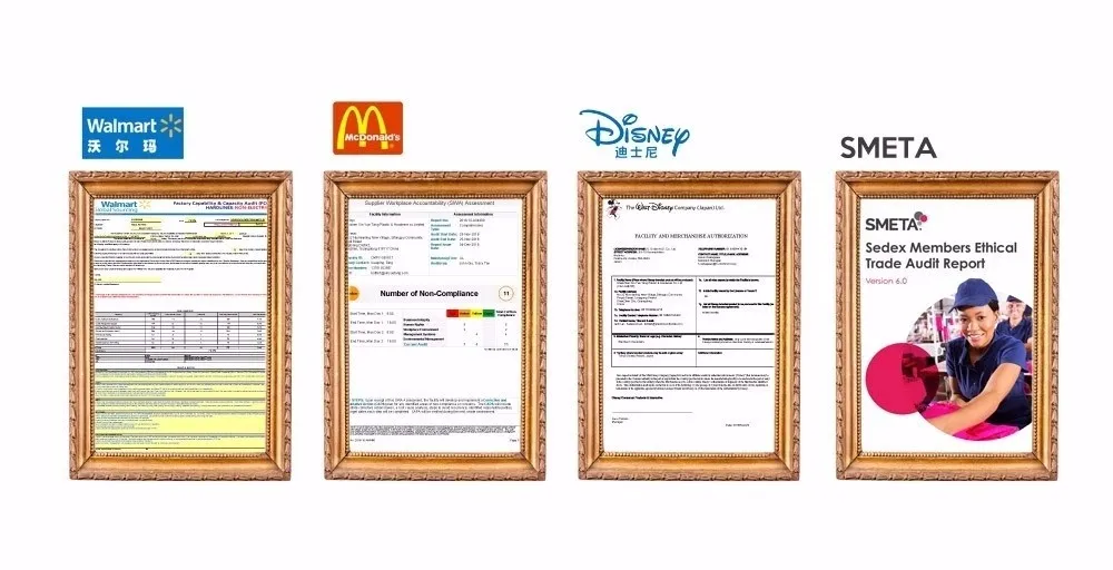 Our factory has passed factory audits such as: