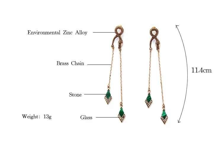 Ed01166 Vintage Gold Geometric Irregular Crystal Rhinestone Long Green Turquoise Snake Earrings For Women Wholesale