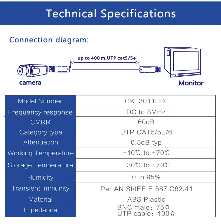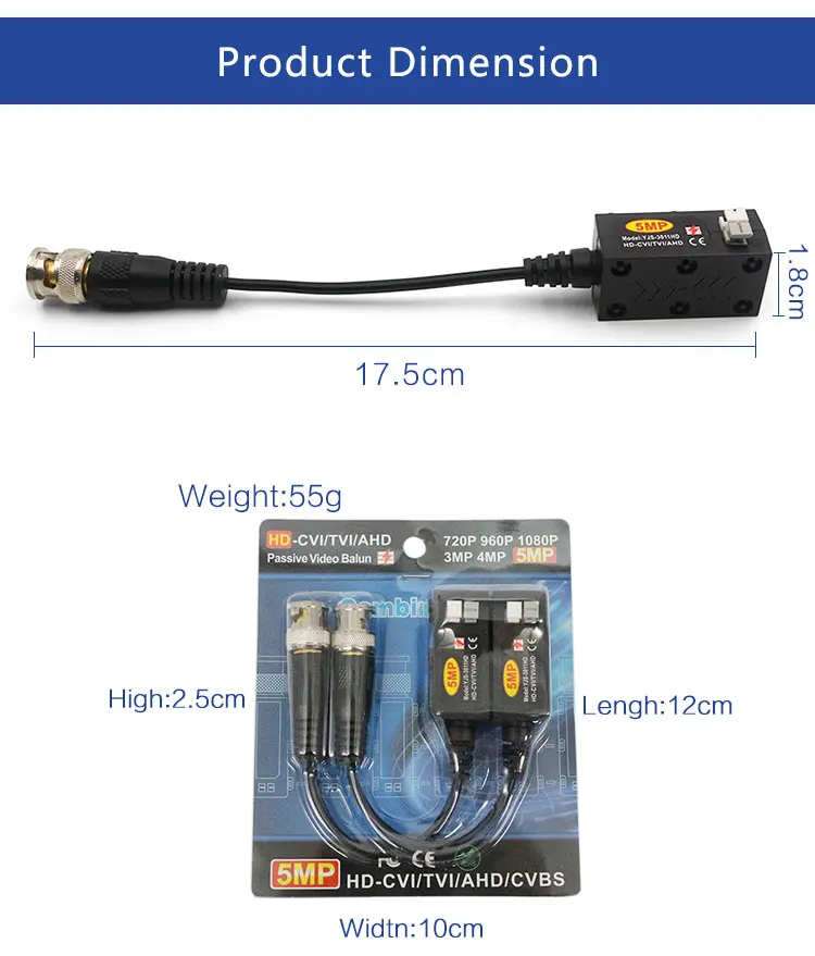 Video Balun: 1 pair/box, 100 pairs/carton