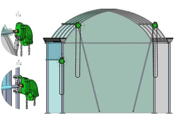 Application: film greenhouse side and roof ventilation