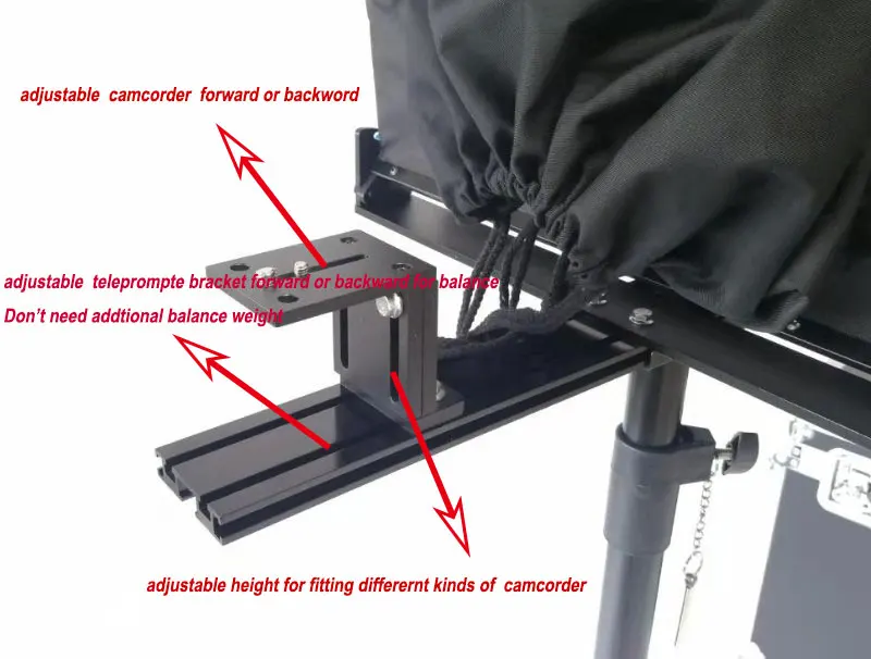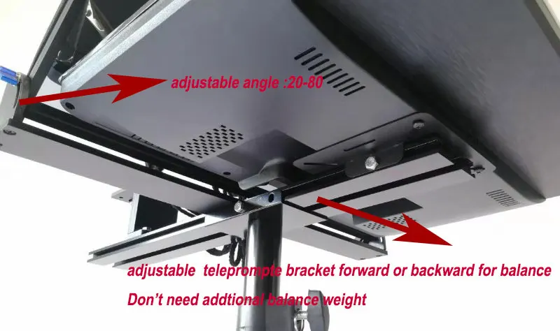 Lightweight and easy to install operation . Sliding center of gravity adjustment for balance the teleprompter.