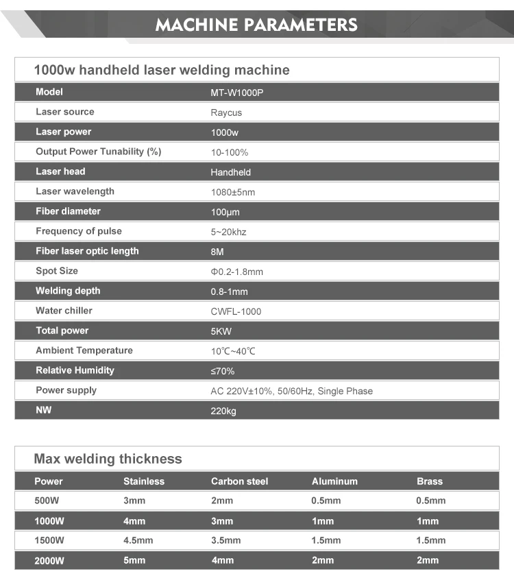 We will help you choose the suitable machine and share you the solution; you can share us the following information 1. what material will you weld 2. The welding material thickness 3. Is it joint welding or over-lay welding 4. What is the exact usage for the machine , for product welding or repair or other application | ||||||||