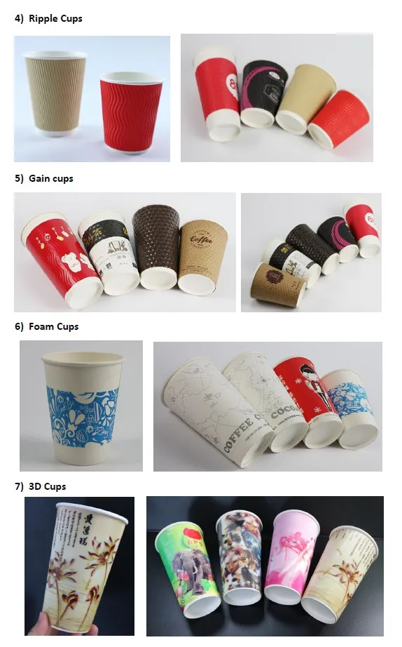 Variety of paper designs: ripple wall, double wall, cold cup, ice cream cup, soup cups