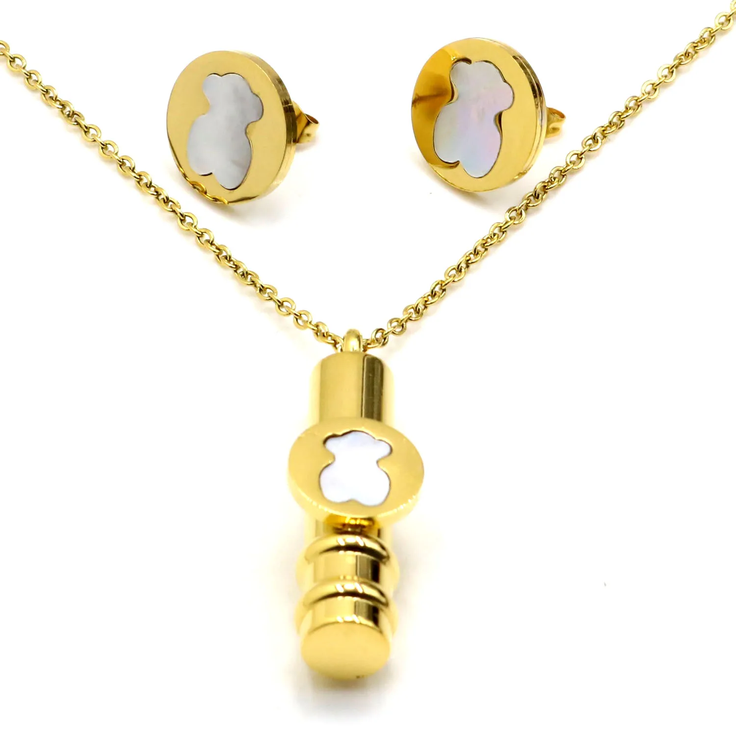Item Style | Afxsion high quality Titanium steel jewelry Bear pendant necklace and earrings set Stainless steel jewelry set women |