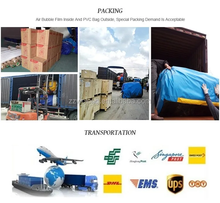 Quality control | 1. Incoming material 100% batch inspection, GB/T2828.1 testing standard; 2. Professional equipment to do the tensile /peel strength / colour fastness /freezing and other tests, no unexamined or unpassed fabrics shall be applied; 3. On site process inspection; 4. Finshed products inspection and pressure test; 5. Loading inspection; | ||||||