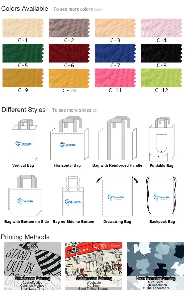 PP Woven, Non Woven, RPET, Polyester,PP Non Woven,Jute,Cotton... They are all biodegradable, such as non woven can be biodegradable in 90 days.