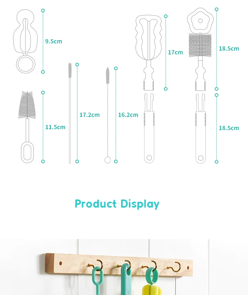 Product name: | Sponge bottle brush cleaning nipple brush 360 degree rotation baby bottle cleaning brush set |