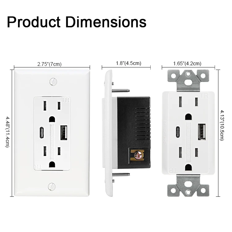 Easy installation --- Designed for back or side wiring for easy installation. Wall plates and 2 type-C cables included. 3 year limited warranty, UL certified