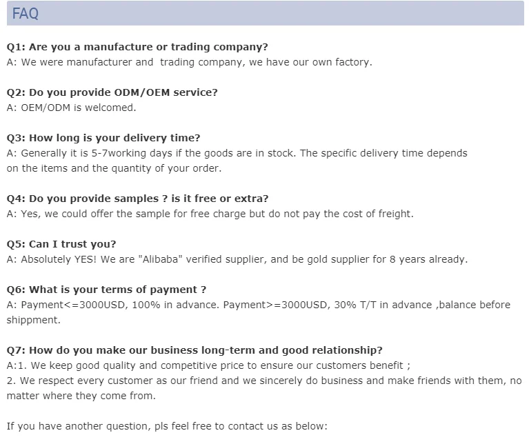 4. Warehouse: Have our own factory and trading company. So we can arrange the production very soon.