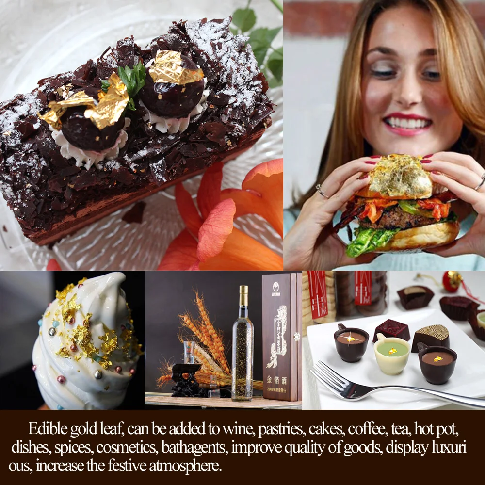 24K Edible Gold Leaf and gold flakes is perfect for creating a luxurious presentation on any dish.