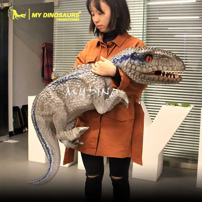 Realistic baby dinosaur hand puppet, dinosaur shoulder puppet, dinosaur arms puppets are our new and hot selling, each baby dinosaur puppet is customize for client, it is hand control with movement of eye blink, mouth open/ close, head and neck moving, besides, we have different vivid dinosaur roaring for your choices. now we have T-REX, velociraptor, brontosaurus, ankylosaur, carnotaurus, parasaurolophus, spinosaurus and dragon puppets, contact us customize your own dinosaur hand puppets.