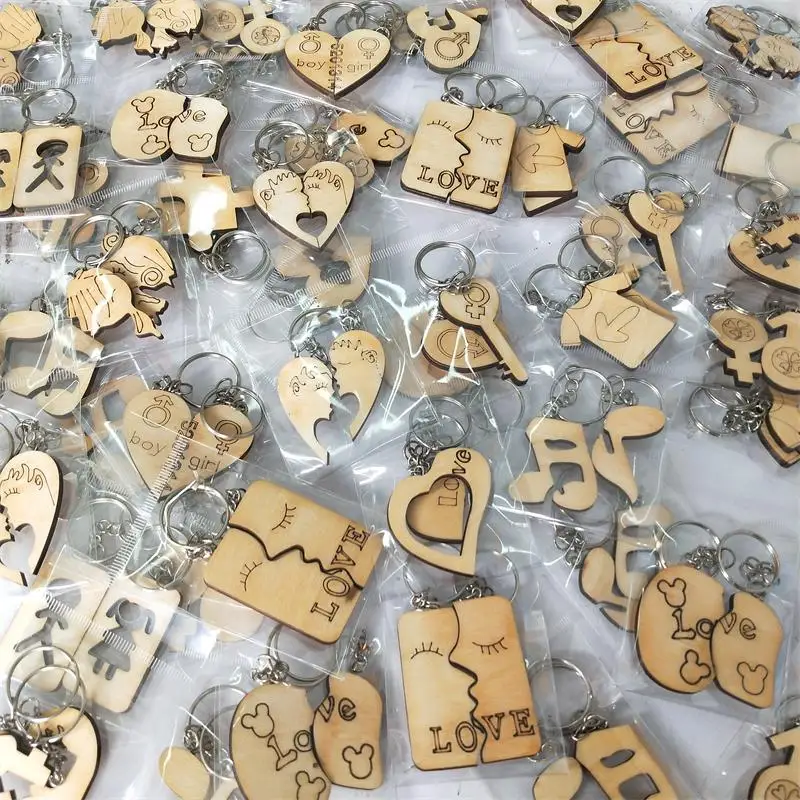 Factory Wooden key chain Couple Love Gift Keychain