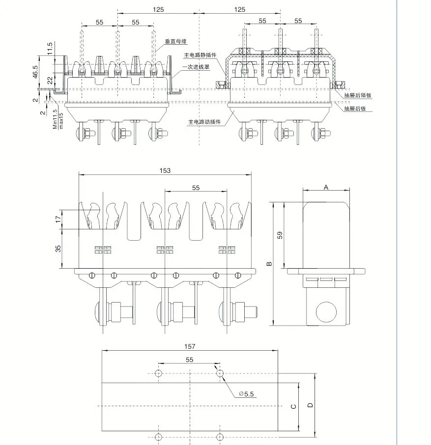 | Ertical busbar Space between | 55mm |
