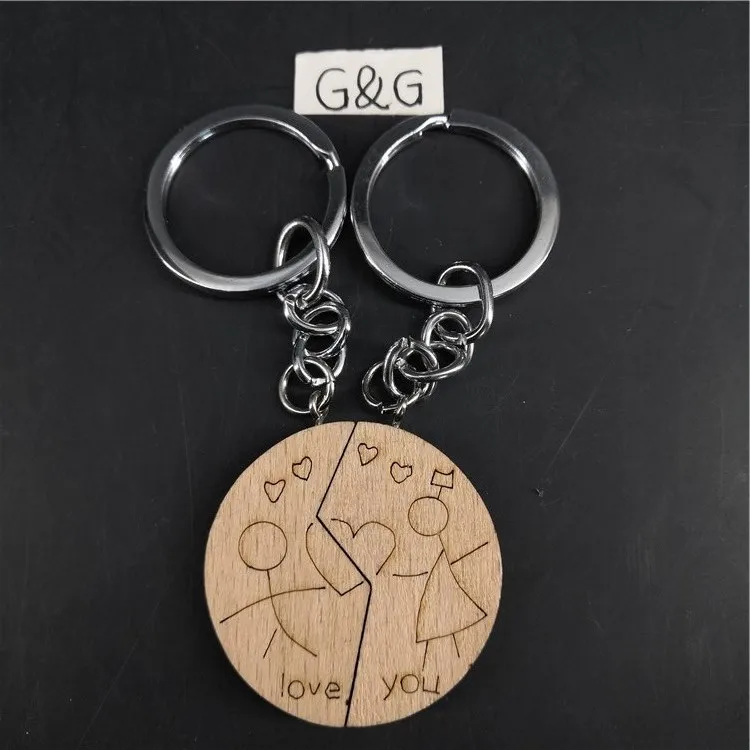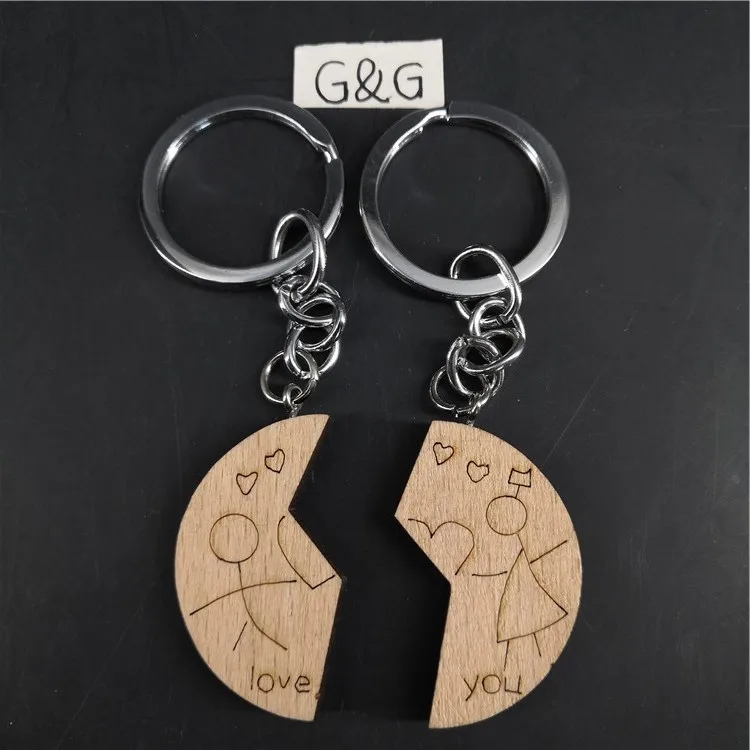 High Quality Custom Wooden Boy And Girl Couple Key Ring Love You key Chain Pair