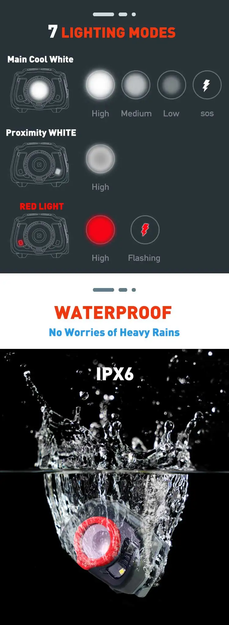 Lighting modes | white high/medium/low/sos, Auxiliary white high, red high,2Hz flashing |