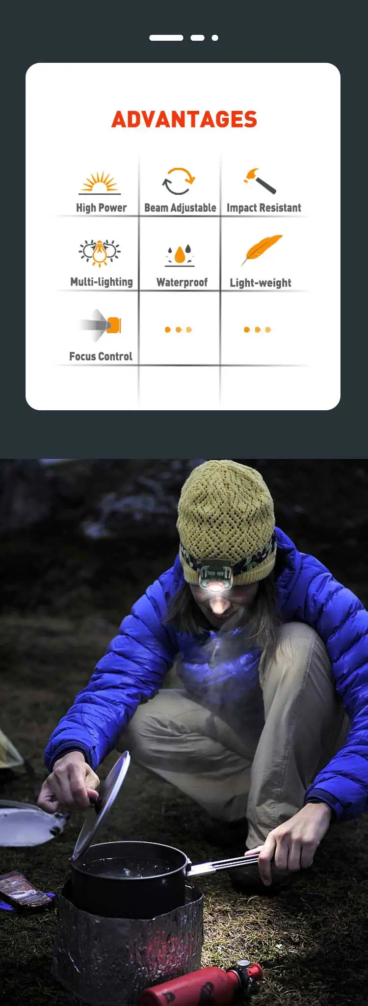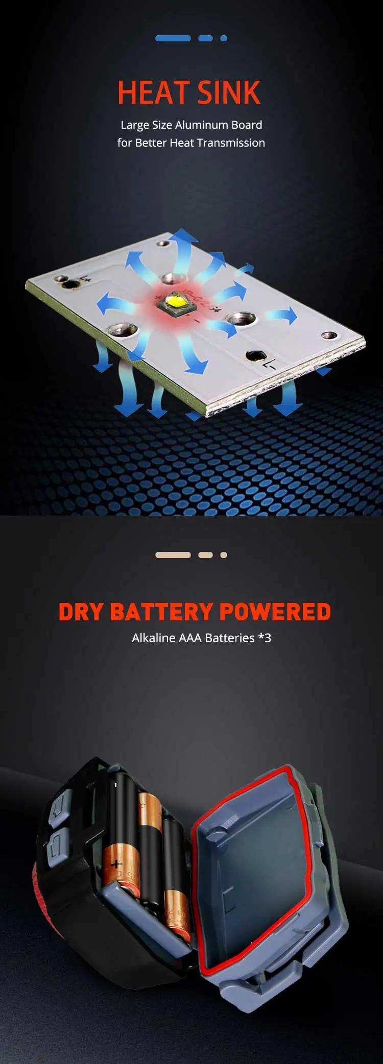 6. Aluminum Alloy Headlamp ( Rechargebale or dry battery)