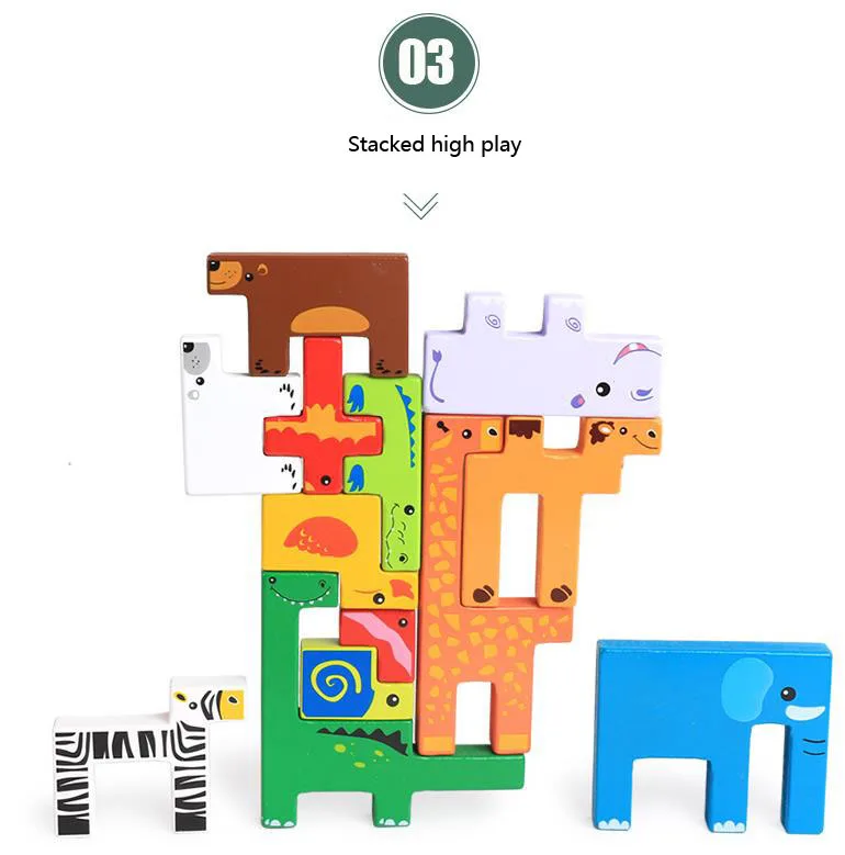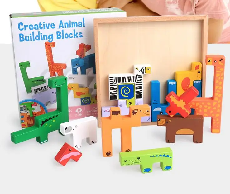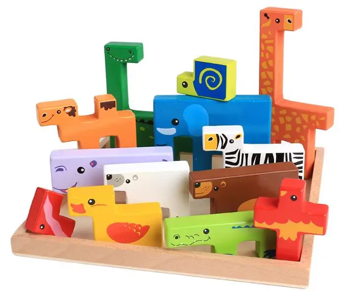 Item:Children educational toys creative new animal 3D building blocks wooden puzzles baby toys