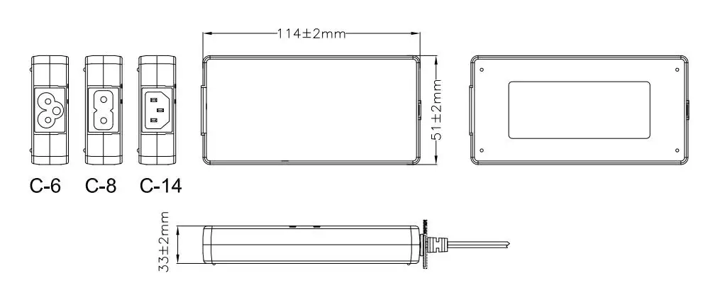 L114(4.5") x W51(2.0") x H33mm(1.3")