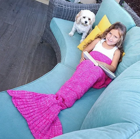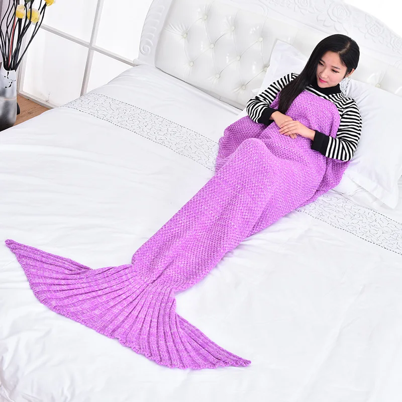Mermaid Throws Bag Warm Kids Adult Baby Sleeping Wrap Handmade Knitted Home Sofa Bedding Mermaid Tail Blanket