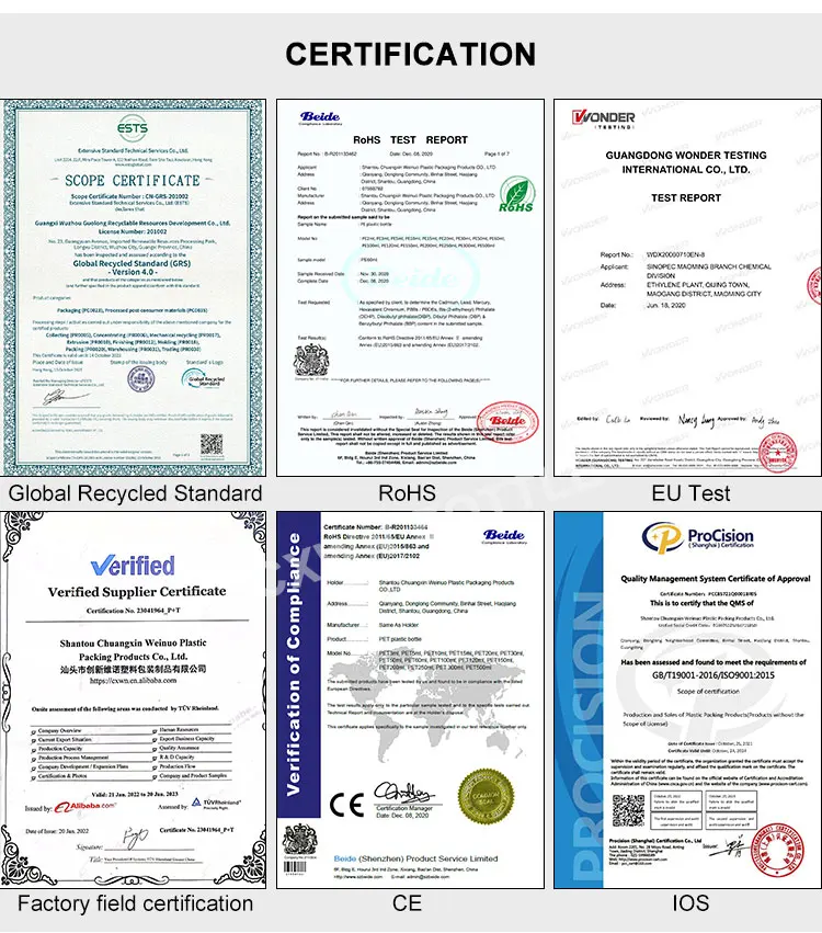 Material | Bottle is Plastic PET, cap is PP | ||||