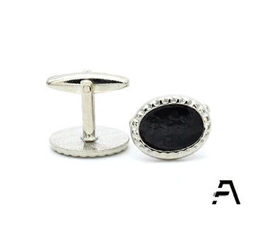 Product Name | Oval Black Epoxy Silver PatternCufflinks |