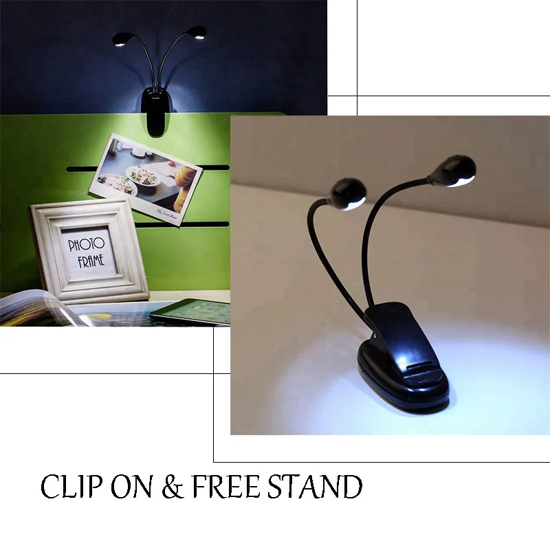 Flexible double goose necks clip on dual head grow lamp desk lamp Led Reading Lamp
