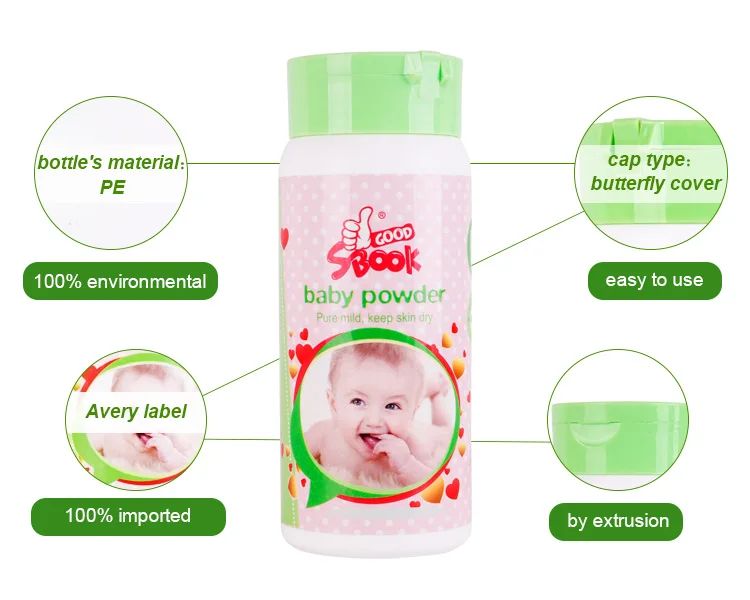 Usage: | Spread the powder with powder puff on the whole body of baby.pay more attentation on the buttocks when replacing diaper.it can prevent the skin irritation causedby urine. |