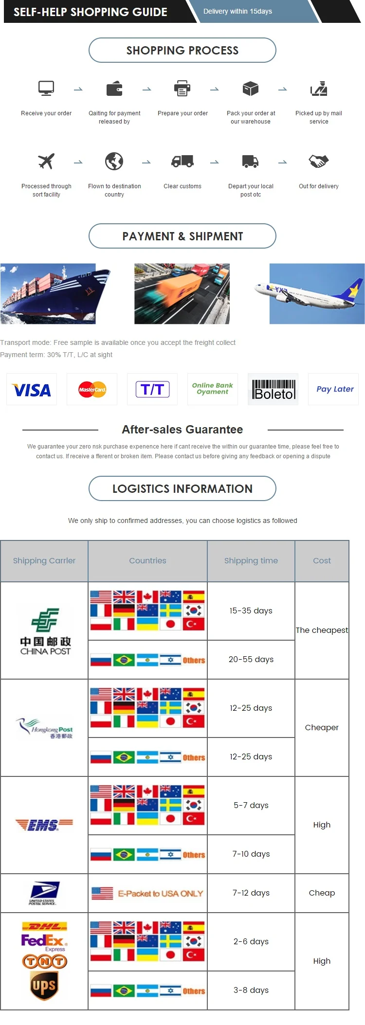 A1: We will quote you based on your order quantity .And advise you suitable shipping way .Please feel free send inquiry to us .