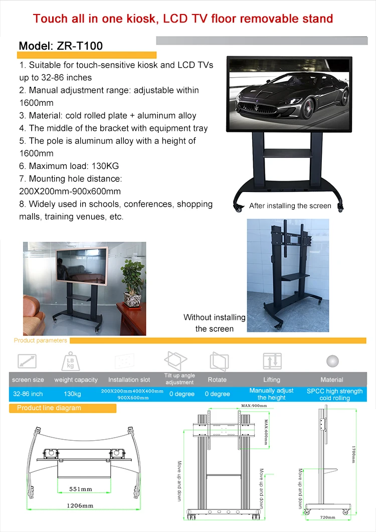 Panel size(mm) | 55'', 65'', 75'', 86'', 98''(optional) | Touch principle | IR Touch-Panel | |||
