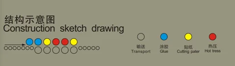 | Front-back feeding | Glue spreading equipment, Paper sticking equipment, automatic paper cutting equipment ,hot press equipment |