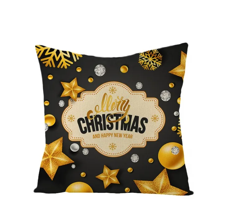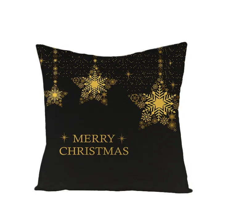 45*45cm Merry Christmas Letters Cushion Cover Black Snowflake Decorative Pillows Cover for Home Sofa Throw Pillowcase