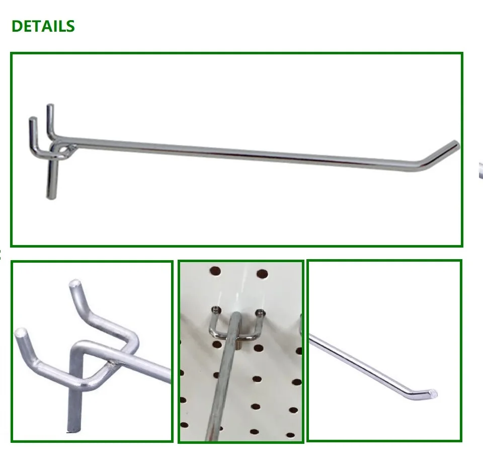 Chrome Finished Supermarket Metal Display Hanging Pegboard Hook for punched board