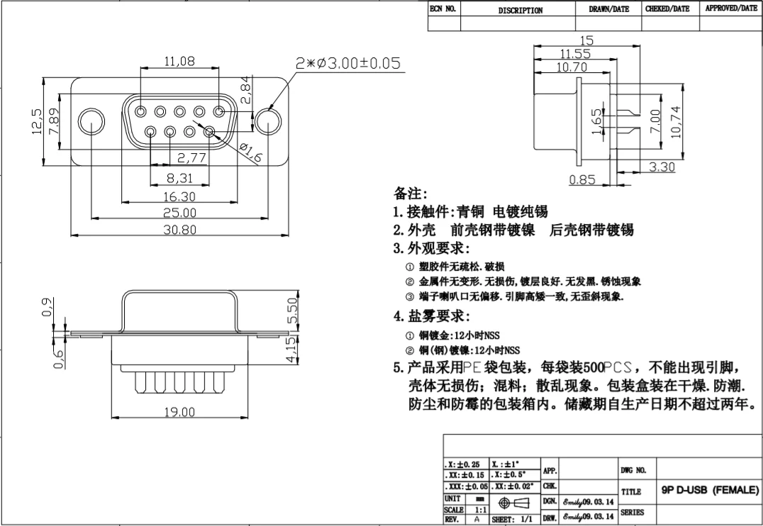 Blue glue wire bonding DB9 connector female socket wire bonding PC converter cable connector 9 hole 9P