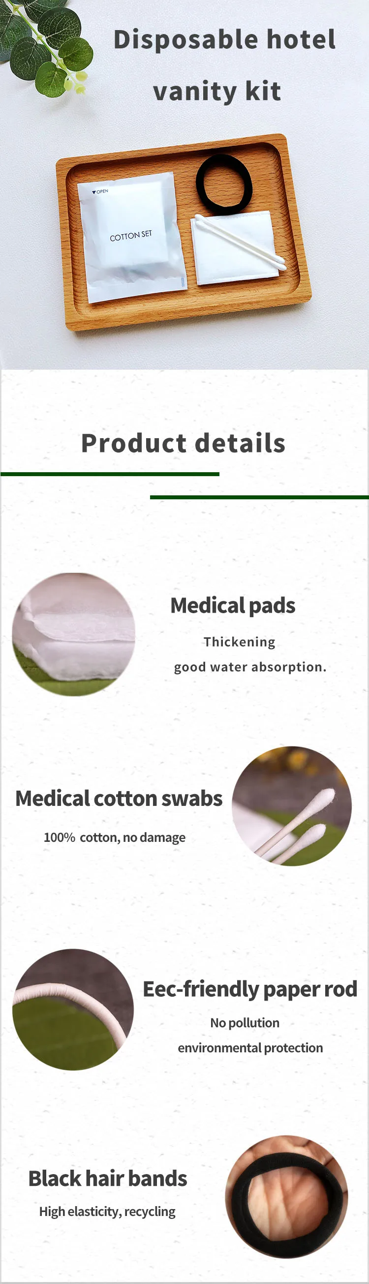 Wholesale Custom Package Disposable Hotel Suppliers Cotton Set Vanity Kit