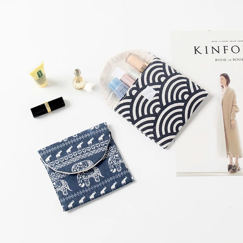 Hot sale cotton outdoor convenient cute washable canvas sanitary pads napkin package storage bag