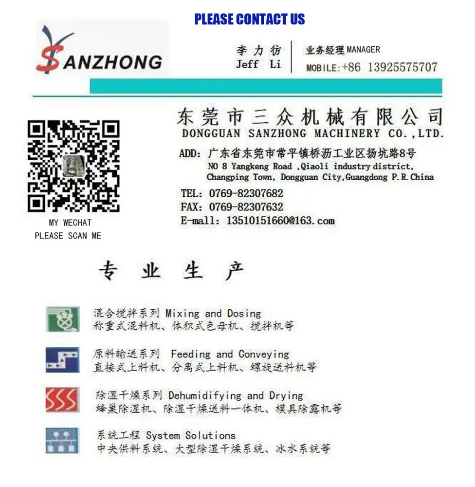 Sanzhong volumetric dosing units guarantee accuracy and consistency blend of the master batch and additives.