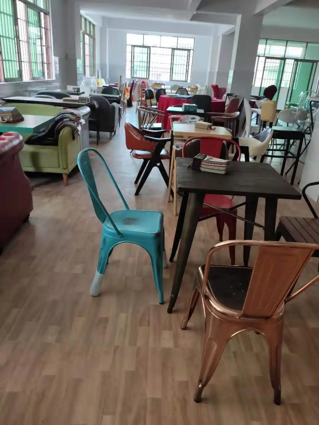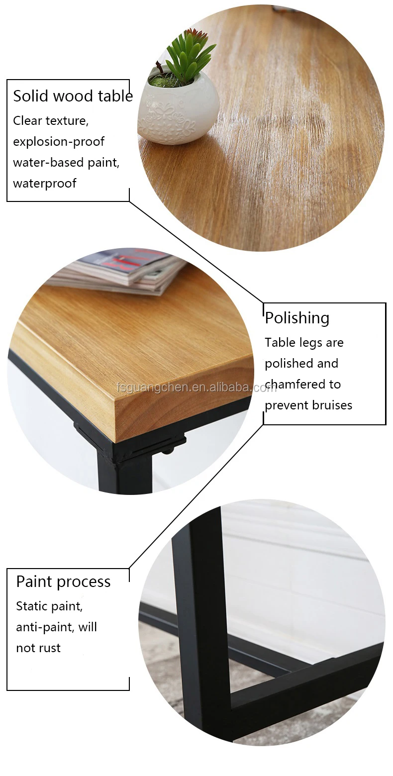 | Material | Table:oak wooden/any wood table top can customised, Iron Chair:oak wooden/any wood seat, Iron frame |