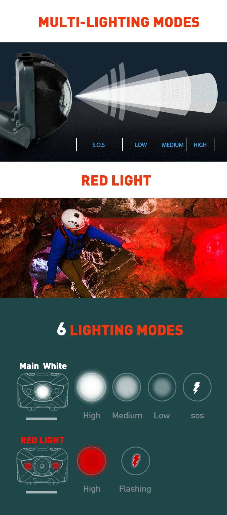 Lighting Modes | White High,medium,low,sos, red high,flashing |